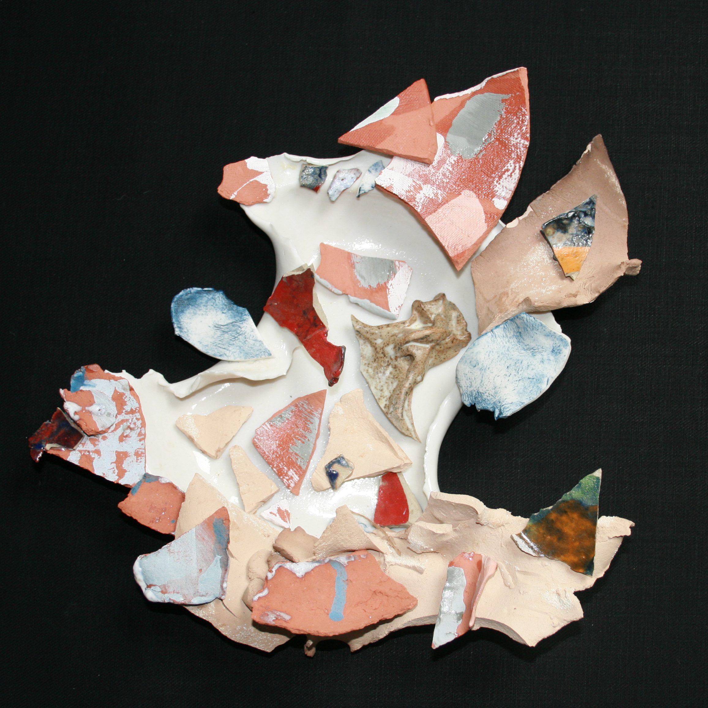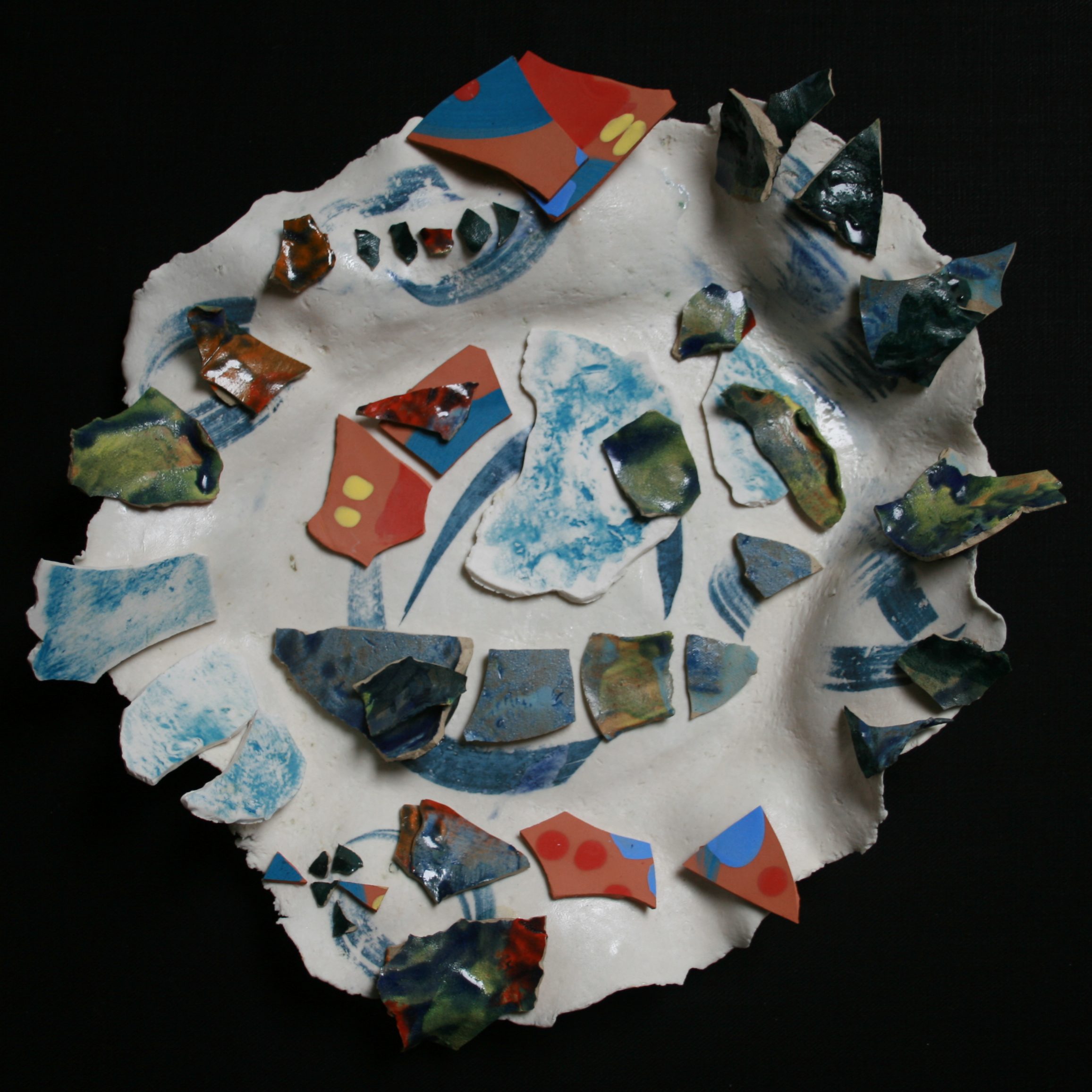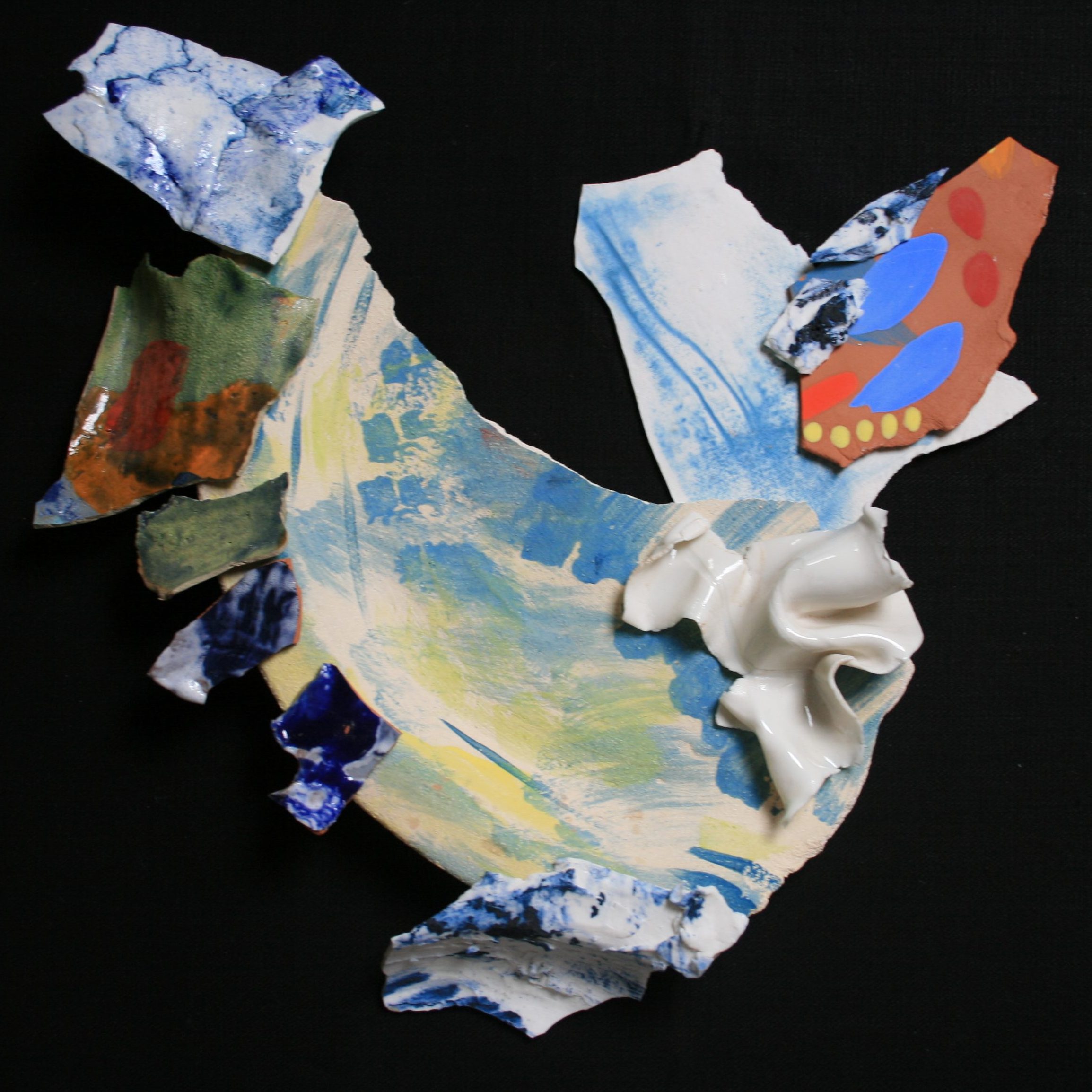 Plates of Chaos is a series of reassembled, broken, ceramic pieces made in response to unsettled times and uncertain futures. The series, which began in 2016 becomes the Party of Chaos and is constantly being added to.