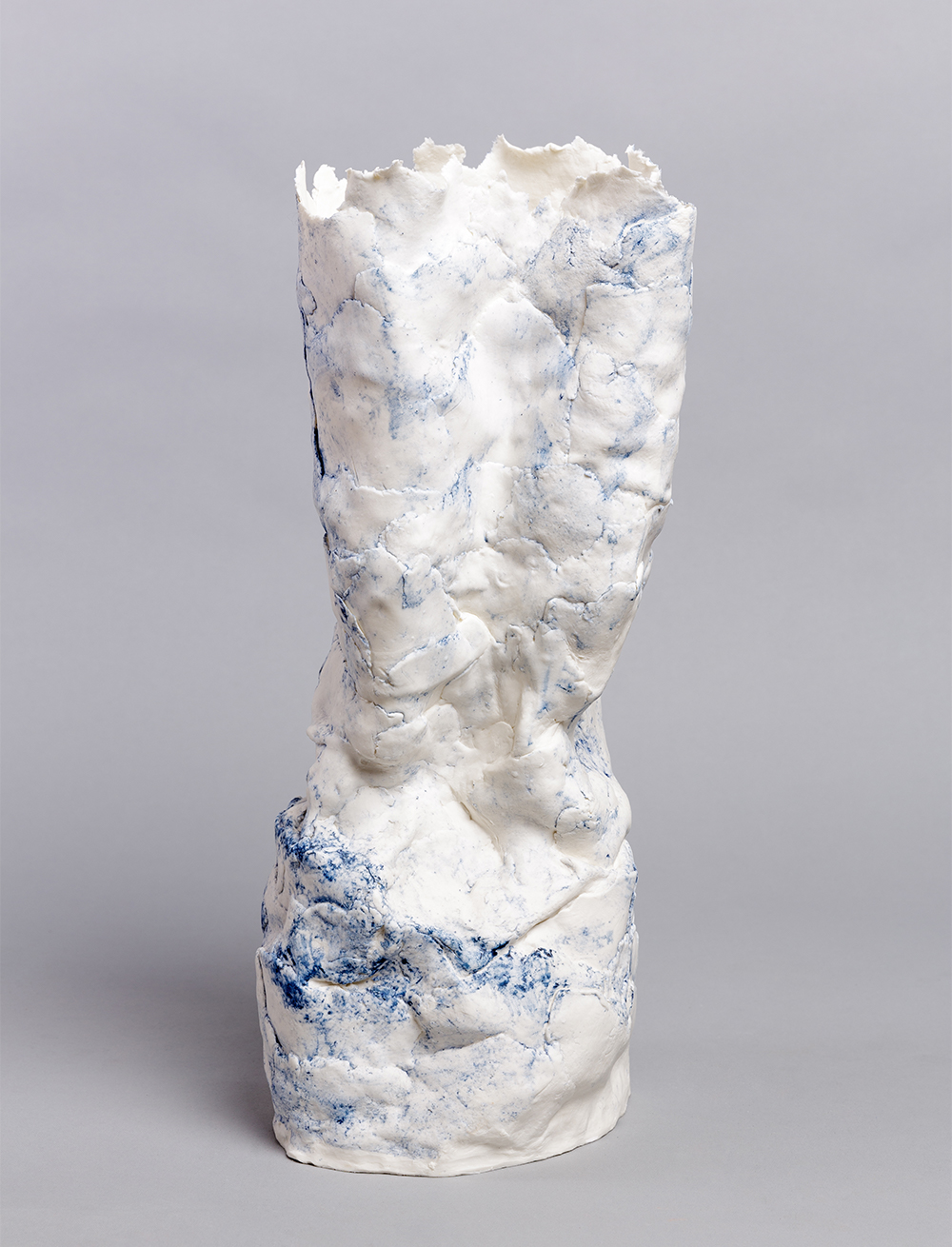 The pieces in the Transient Memories series are hand built in earthenware and paper to a height of c70cm. The building of each one is a construction of memories and defined by the wax resist surface drawing.